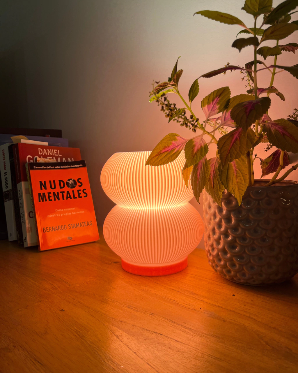 La lámpara Nebula es una pieza que fusiona geometría y fluidez para crear un efecto lumínico atrapante. Su cuerpo en PLA está compuesto por líneas curvas que interactúan con la luz, dando la sensación de movimiento y profundidad. Es ideal para ambientes modernos que buscan un toque futurista. ✨